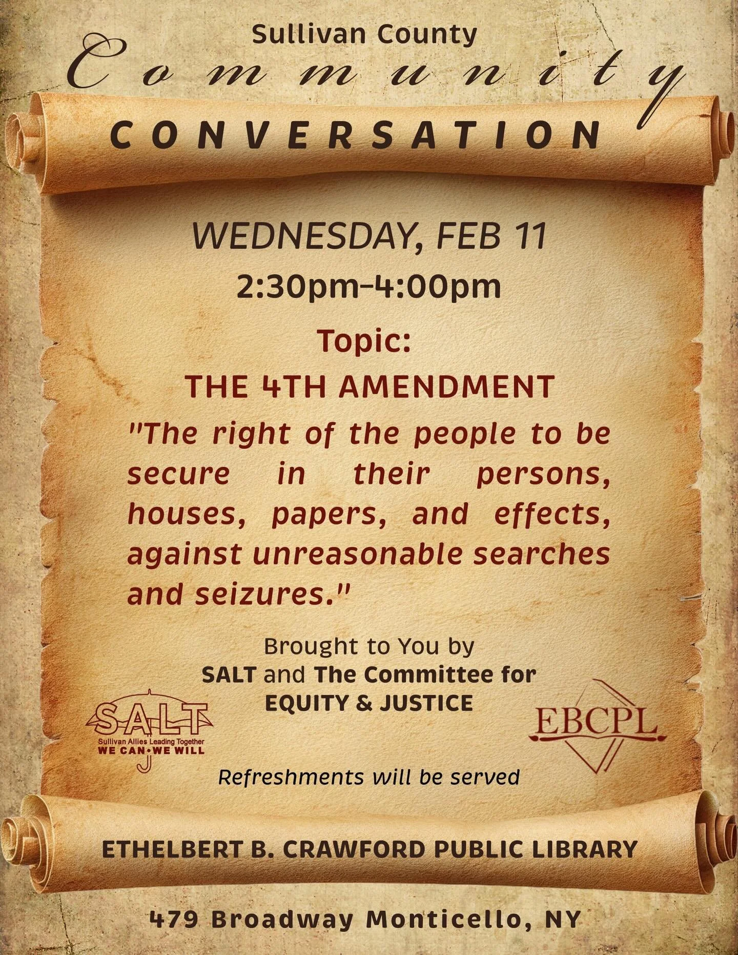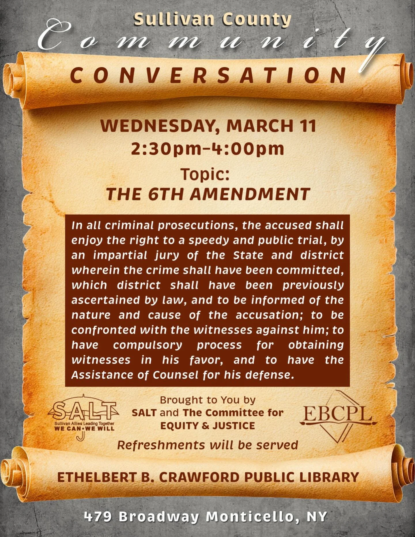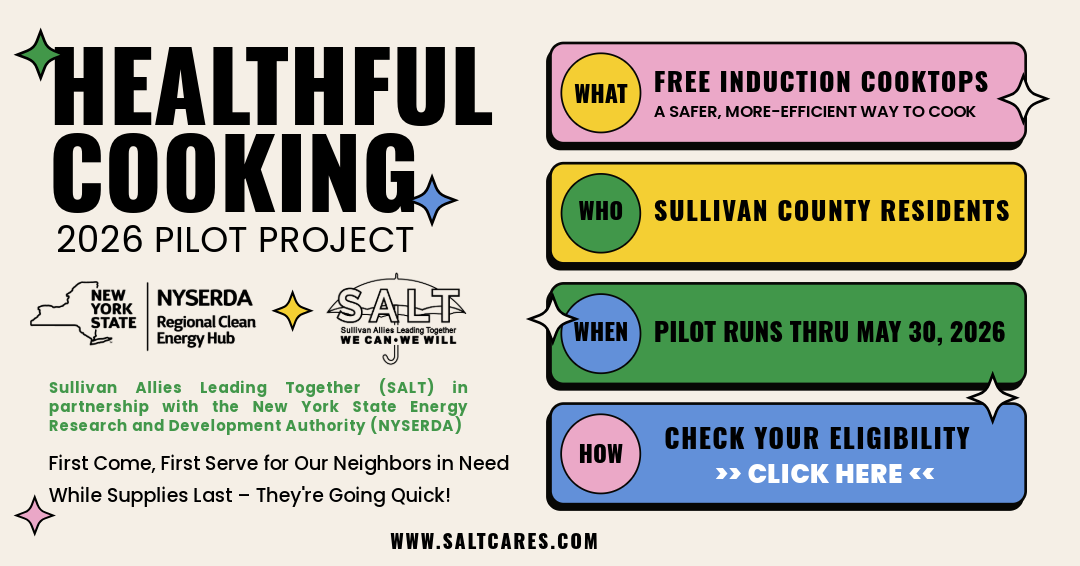 Sullivan Allies Leading Together (SALT) is a diverse partnership of community members, business owners, and agencies committed to working together to improve our quality of life in Sullivan County. Through information sharing, increased prevention efforts, and inter-agency collaboration, we seek to improve access to the services that empower us all to create lasting and positive changes in our community.
